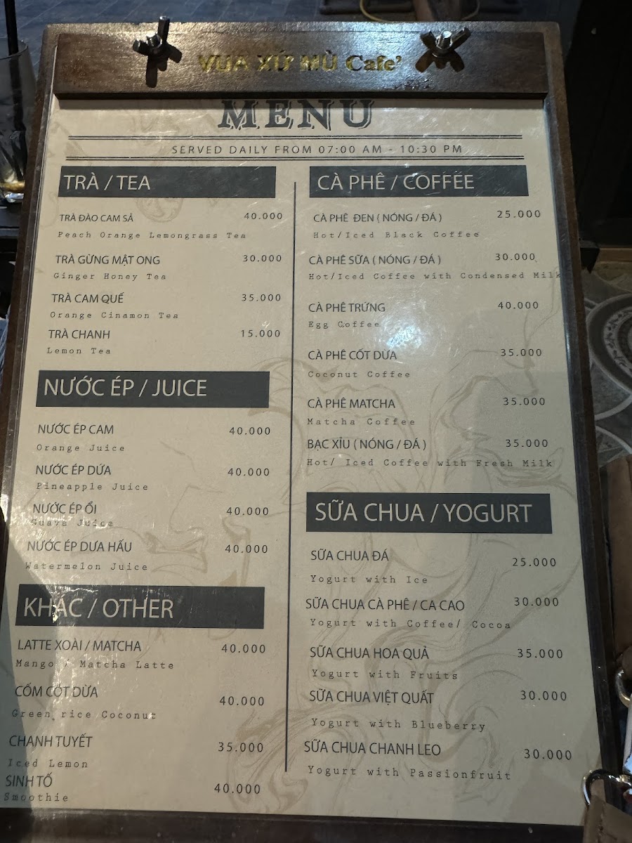 Owner and guide, known for his warm hospitality and English proficiency, enhances the experience by sharing local tourist information and organizing memorable trips. Whether you seek caffeine, a meal, or a local adventure, VUA XỨ MÙ Cafe' promises a delightful experience tailored just for you.